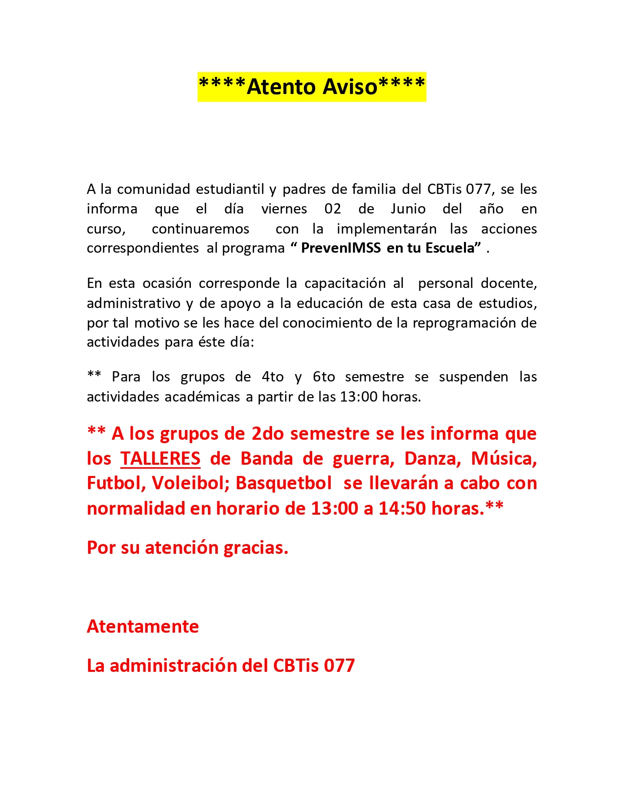 Atento Aviso **PrevenIMSS En Tu Escuela**
